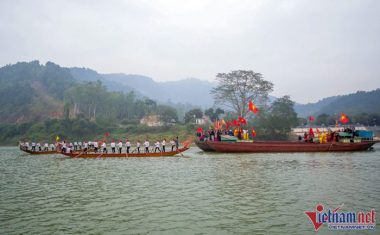 Sáng 2/2 (tức ngày 12 tháng Giêng), hàng trăm người đi trên 9 chiếc thuyền lớn, nhỏ xuống dòng sông Lam (Nghệ An) để xin múc nước mở màn cho lễ hội Vua Mai năm 2023.