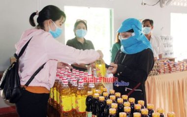 Ở Phường Tiến Thành, thành phố Đồng Xoài, chỉ trong 1 giờ đồng hồ, hàng trăm hộ dân đã đến chọn nhu yếu phẩm cần thiết phục vụ bữa ăn của gia đình.
