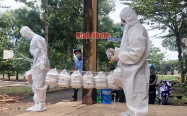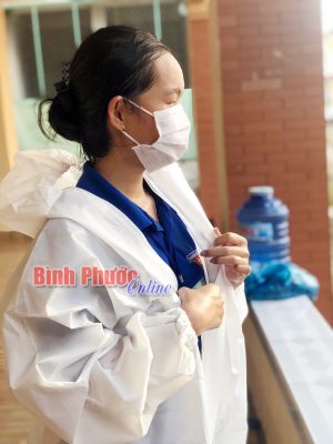 Hình ảnh 6 tình nguyện viên của Đội hình thanh niên tình nguyện TP. Đồng Xoài đang từng ngày hỗ trợ phòng, chống dịch Covid-19 ở các khu cách ly tập trung tại Trường THPT dân tộc nội trú tỉnh và Trường cao đẳng Bình Phước (cũ) với các hoạt động như phát cơm cho người đang cách ly, dọn dẹp khuôn viên khu cách ly… đang góp phần nhân lên những điều tốt đẹp, thấm đậm tình người.