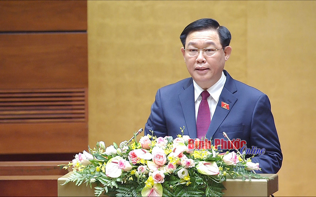 Chủ tịch Quốc hội Vương Đình Huệ phát biểu tại phiên họp