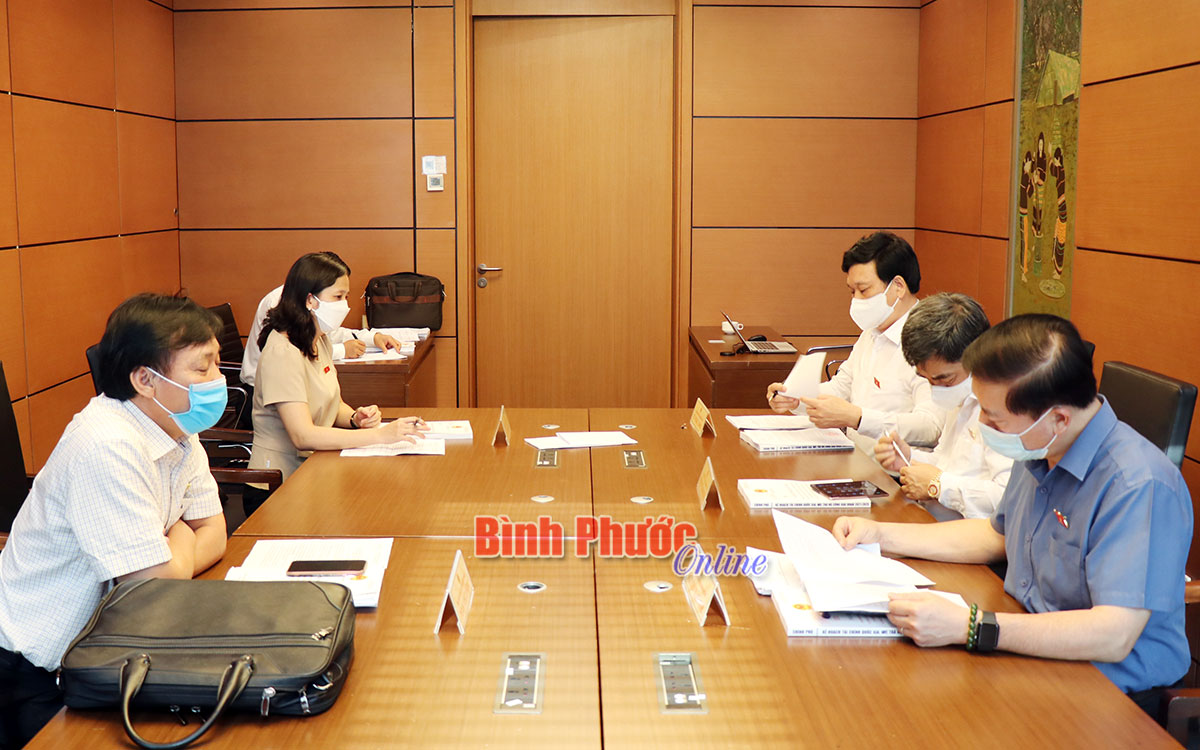 Các đại biểu Quốc hội tỉnh Bình Phước thảo luận tại đoàn để bầu Phó trưởng đoàn