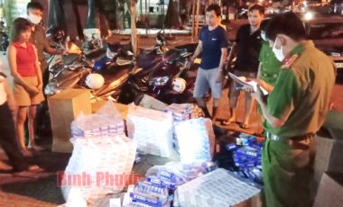 Qua nhiều ngày bám địa bàn và bí mật theo dõi, rạng sáng hôm nay (24-4), Đội cảnh sát kinh tế Công an TP. Đồng Xoài phối hợp lực lượng quản lý thị trường tỉnh đã bắt quả tang một vụ buôn bán hàng cấm. Hàng hóa là 4.390 gói thuốc lá Hero và Zet không có giấy tờ hợp pháp.