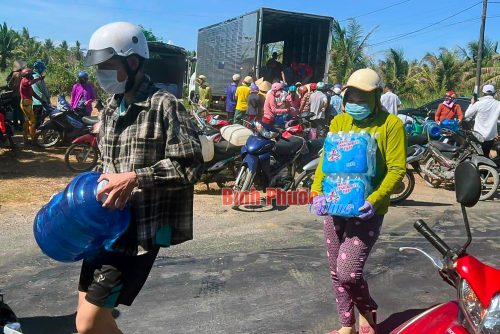 Ngày 30-4, phật tử chùa Thanh Tịnh, xã Quang Minh, huyện Hớn Quản đã tự nguyện đóng góp 3 xe, chở 17 tấn nước trợ giúp người dân xã Phước Vĩnh Tây, huyện Cần Giuộc, tỉnh Long An. Chị Hồ Thị Thoan, Chủ nhiệm Bếp cơm không đồng, xã Tân Hưng phấn khởi cho biết: Nước dùng cho sinh hoạt được chúng tôi lấy từ những giếng nước mát lành ngay tại quê hương Hớn Quản nên người dân Long An trân quý đón nhận. Dịp này, đoàn còn trao tặng 2.000 quả trứng, 20 phần quà trị giá 10 triệu đồng cho bà con nghèo.