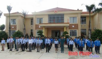 Đội hình tình nguyện dự chào cờ đầu tuần với UBND xã Tân Khai.