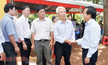 Chủ tịch UBMTTQVN tỉnh Nguyễn Quang Toản nắm bắt tâm tư, nguyện vọng người dân thông qua các thành viên tổ dân vận ấp Thuận Phú 2, xã Thuận Phú, huyện Đồng Phú (xã đạt nông thôn mới năm 2016)