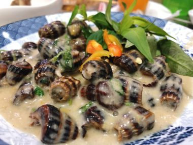 Khi thưởng thức, thực khách chỉ có thể dùng tay, cầm ốc lên, khều phần nắp vỏ rồi đưa lên miệng hút mạnh và từ từ cảm nhận vị ngọt thơm của nước cốt dừa hòa quyện cùng miếng thịt ốc giòn giòn