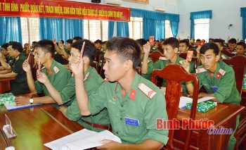 Các đại biểu Đoàn thanh niên Bộ CHQS tỉnh biểu quyết nghị quyết của đại hội – Ảnh: Quang Thạch