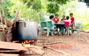 Bên nồi bánh chưng đang hừng lửa, các thế hệ trong gia đình bà Nguyễn Thị Hợi, phường Phú Đức, TX. Bình Long cùng cảm nhận không khí ngày tết