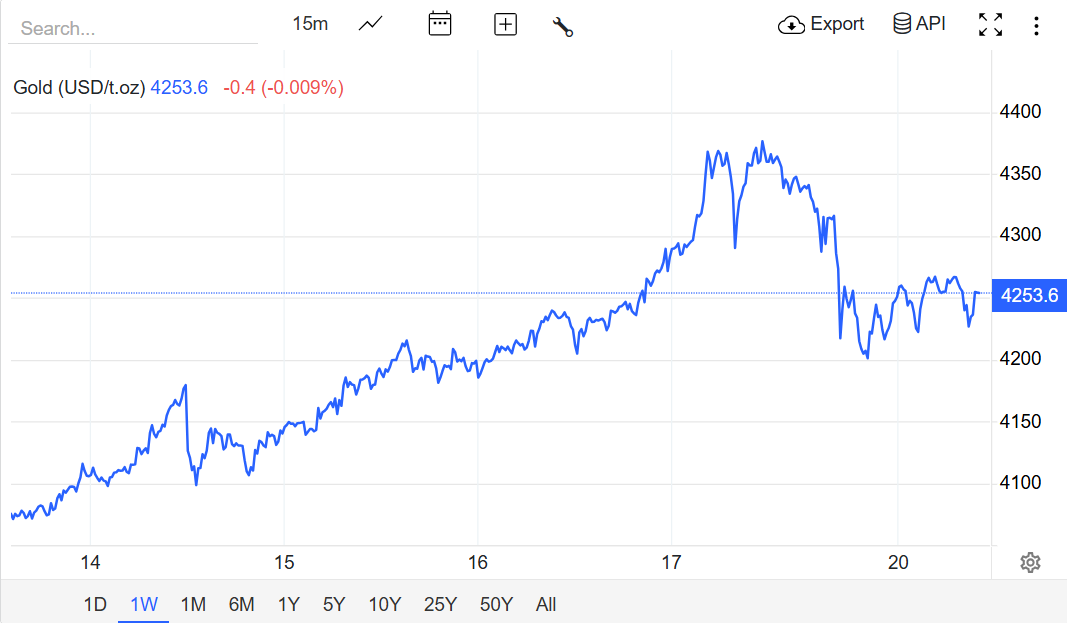 Trên thị trường thế giới, thời điểm 14 giờ 30 ngày 20/10 (giờ Việt Nam), giá vàng giao ngay ở mức 4.253 USD/ounce, tăng hơn 13 USD/ounce so với thời điểm đầu giờ sáng.