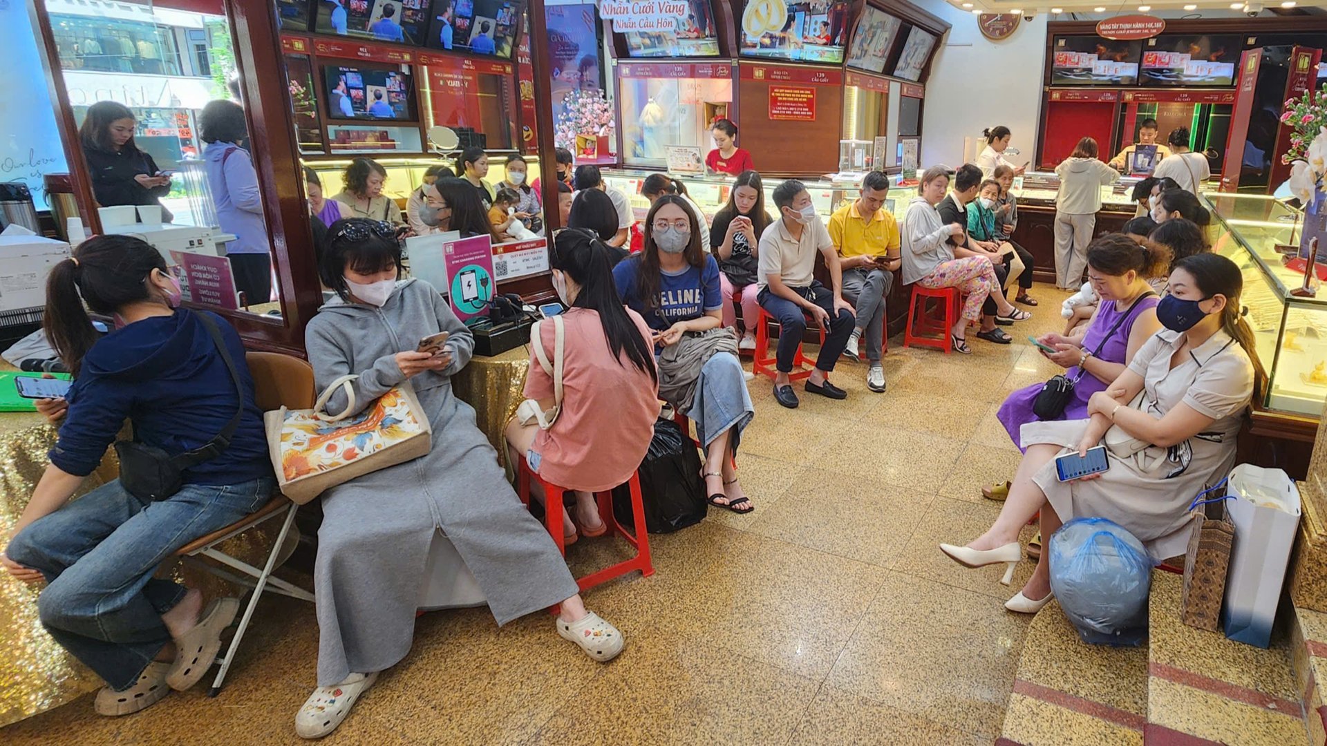 Nhiều người chờ đợi cả buổi sáng để mua vàng. Ảnh: Thái Nguyễn