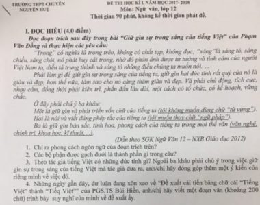 Đề xuất cải tiến chữ viết "Tiếq Việt" của PGS.TS Bùi Hiền được đưa vào câu hỏi của đề thi Ngữ văn lớp 12 trường THPT chuyên Nguyễn Huệ, Hà