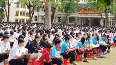 Học sinh trường THPT Nguyễn Du tham gia buổi tuyên truyền