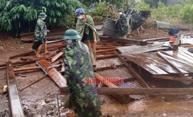 Mặc dù toàn quân đang thực hiện nhiệm vụ trực chiến phòng, chống dịch Covid-19 nhưng ngay khi nhận được tin báo, Ban CHQS huyện Bù Đốp đã cử 20 cán bộ, chiến sĩ Đại đội 10 phối hợp với dân quân xã Hưng Phước xuống địa bàn giúp dân dựng nhà, lợp lại mái tôn, dọn dẹp những vật dụng bị đổ nát….