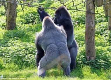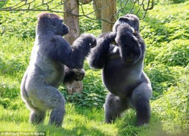 Theo Daily Mail, những du khách có mặt tại Vườn thú Paignton ở Devon (Anh) đã vô cùng bất ngờ và thích thú khi tận mắt chứng kiến màn so găng của hai con khỉ đột.