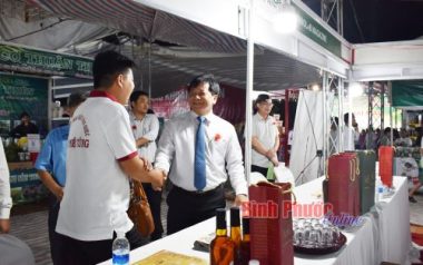 Phó chủ tịch UBND tỉnh Trần Văn Mi tham quan một số gian hàng