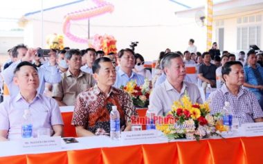Chủ tịch UBND tỉnh Trần Tuệ Hiền, Phó chủ tịch UBND tỉnh Huỳnh Anh Minh và đại diện lãnh đạo các sở, ngành, huyện Bù Đăng dự lễ khánh thành.