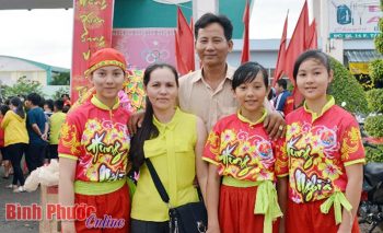 Anh Hà Tiến Dũng, phụ trách Đội lân sư rồng Long Phi Đường của Trung tâm Văn hóa – Thể thao huyện Lộc Ninh, cho biết: “Đánh trống trước nay được xem dành cho nam giới. Khi có một nữ đánh trống, chưa nói chất lượng, mọi người đã rất thích thú, thán phục. Em Nguyễn Thị Thùy My (2002, ấp 1B, xã Lộc Tấn), yêu nghệ thuật, có năng khiếu và chịu khó học hỏi trong tập luyện nên sau thời gian ngắn đã đánh được trống. Đến nay My chơi trống được 4 năm”.