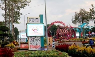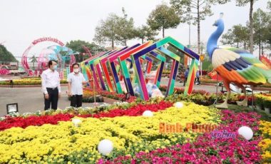 Đường hoa xuân Tân Sửu 2021 với chủ đề “Đồng Xoài thành phố trẻ – khát vọng thịnh vượng” với chiều dài 90m, tổng diện tích hơn 2.400m2, bao gồm 3 đại cảnh và 9 tiểu cảnh, hơn 12.300 giỏ hoa của 20 loại hoa đủ màu sắc cùng các mô hình, linh vật được bố trí hài hòa, sinh động.