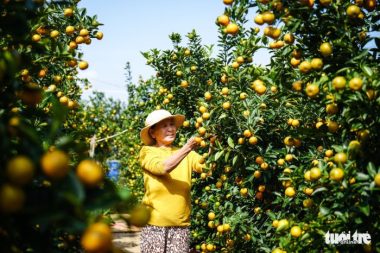Năm nay nhà vườn trồng quất Tết tại TP Hội An, Quảng Nam, phấn khởi vì quất được giá cao, thương lái chốt bao tiêu sớm ngay tại vườn để chuyển đi các tỉnh Tây Nguyên và Bắc Trung Bộ. Bà Võ Thị Lại (62...