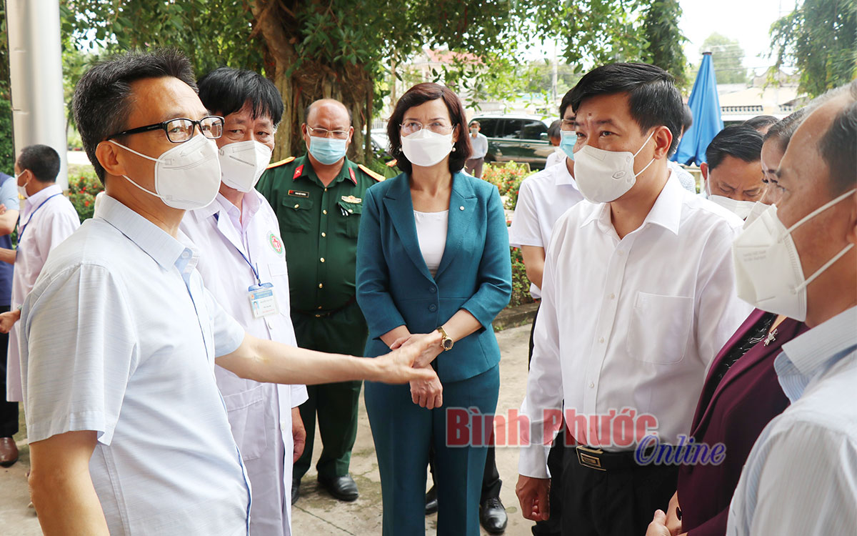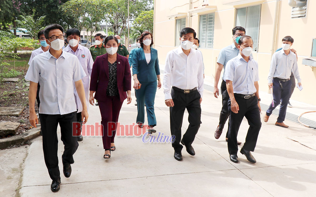 Phó thủ tướng Vũ Đức Đam đã cùng đoàn có buổi kiểm tra đánh giá thực tế công tác điều trị của các phòng, ban, đội ngũ y tế, khu vực các giường bệnh trong bệnh viện dã chiến đặt ở huyện Đồng Phú.
