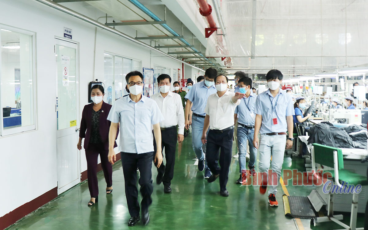 Phó thủ tướng Vũ Đức Đam cũng đã đến kiểm tra thực tế việc thực hiện phương châm “3 tại chỗ” của Công ty TNHH New Apparel Far Eastern trong Khu công nghiệp Bắc Đồng Phú, huyện Đồng Phú.