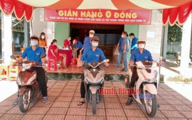 Từ 12 giờ trưa nay (17-7), thành phố Đồng Xoài chính thức thực hiện giãn cách xã hội theo Chỉ thị 16/CT-TTg của Thủ tướng Chính phủ. Để chia sẻ khó khăn với người nghèo và đáp ứng yêu cầu phòng dịch theo Chỉ thị 16, ngày 13-7, Đoàn thanh niên xã Tân Thành đã thành lập đội “Shipper 0 đồng”, gồm 14 tình nguyện viên mang những phần quà nghĩa tình từ gian hàng 0 đồng của Hội LHPN xã đến với người khó khăn trên địa bàn để cùng nhau vượt qua đại dịch.