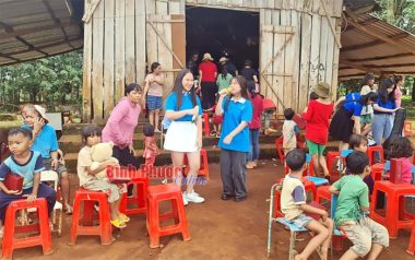 Thảo My cùng Bảo Ngọc hát tặng các bạn nhỏ tại sóc Ông La, xã Thống Nhất, huyện Bù Đăng, tỉnh Bình Phước ca khúc “Tôi thích”