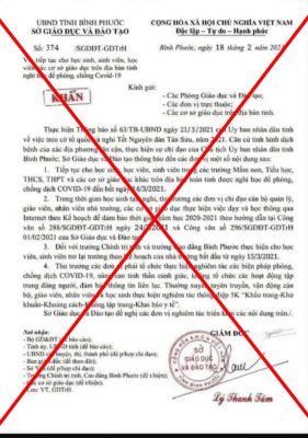 Tối 18-2, lãnh đạo Sở GD-ĐT tỉnh Bình Phước khẳng định, văn bản lan truyền trên mạng xã hội về việc cho học sinh nghỉ học đến 14-3 là giả mạo. Chiều cùng ngày, trên các trang mạng xã hội xuất hiện một...
