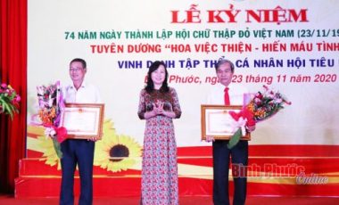 Sáng nay 23-11, nhân kỷ niệm 74 năm Ngày thành lập Hội Chữ thập đỏ Việt Nam (23-11-1946 – 23-11-2020), Ban chỉ đạo cuộc vận động nhân đạo tỉnh Bình Phước tổ chức lễ tuyên dương “Hoa việc thiện &...