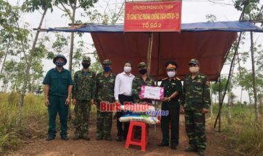 Ngày 10-4, UBMTTQ Việt Nam tỉnh phối hợp Ban chỉ đạo phòng, chống Covid-19 tỉnh đã tổ chức thăm, tặng quà 30 tổ công tác phòng, chống dịch trên đường vành đai biên giới thuộc 2 huyện Lộc Ninh và Bù Đố...