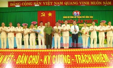 Ngày 24-3, Đảng bộ Công an thành phố Đồng Xoài tổ chức Đại hội lần thứ VI, nhiệm kỳ 2020-2025. Lãnh đạo Công an tỉnh và thành phố Đồng Xoài tặng hoa chúc mừng Ban Chấp hành Đảng bộ Công an thành phố n...