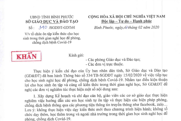 Nhằm phòng, chống dịch Covid-19 đang diễn biến phức tạp, tỉnh Bình Dương và tỉnh Bình Phước đã ban hành công văn cho học sinh, sinh viên, học viên được nghỉ học đến hết tháng 2/2020. Ngày 15/2, ông Đ...