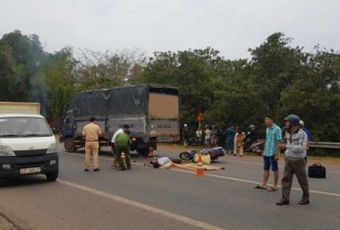 Xe máy tông đuôi xe tải tại Bình Phước, 2 người thương vong