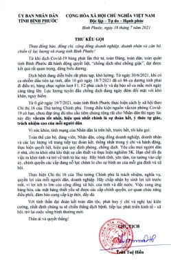 Trước tình hình dịch bệnh Covid-19 diễn biến phức tạp, có chiều hướng lây lan trên diện rộng, hôm nay (18-7-2021), Chủ tịch UBND tỉnh Trần Tuệ Hiền đã có Thư kêu gọi đồng bào, đồng chí, cộng đồng doan...