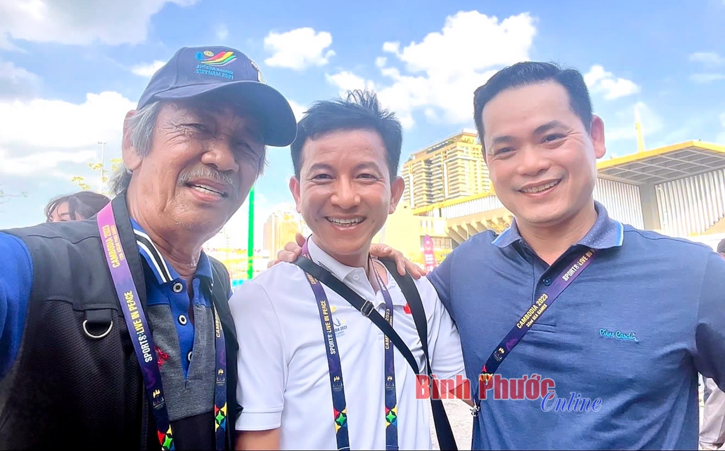 Tác giả cùng biên tập viên Hưng Cát và Nguyễn Tấn (BPTV) tại SEA Games 32 – Campuchia