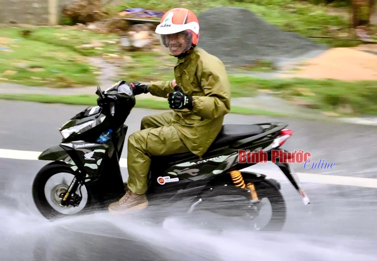 Tác giả trên đường tác nghiệp giải đua xe đạp trong cơn mưa lũ tại Kỳ Anh, Hà Tĩnh