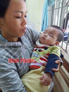 Khoảng 5 giờ ngày 21-7, một phụ nữ đã phát hiện bé trai 10 tháng tuổi nằm trong thùng các tông bị bỏ rơi trong lô cao su ở Chơn Thành.
