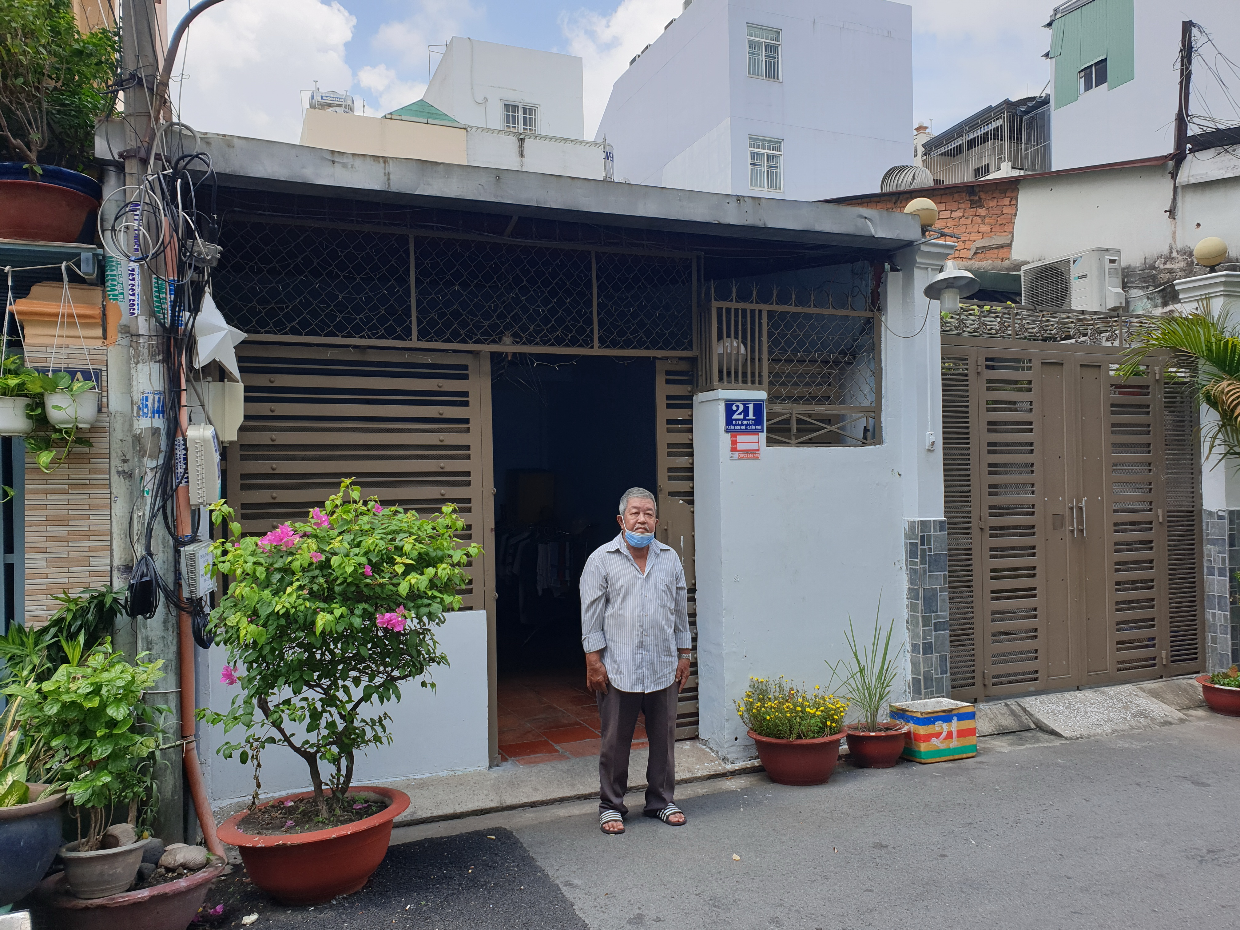 Ông Phạm Chí Sơn trước căn nhà mà ông đã mua của ông Kiểm và ở từ năm 1998 đến nay